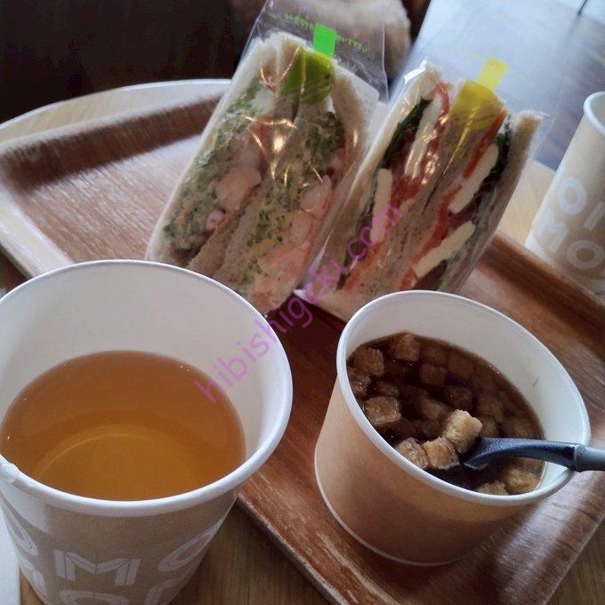 モーニングブュッフェや、モーニングプレートもあったんですが、、サンドウィッチと甘いパンを相方とシェアしました。