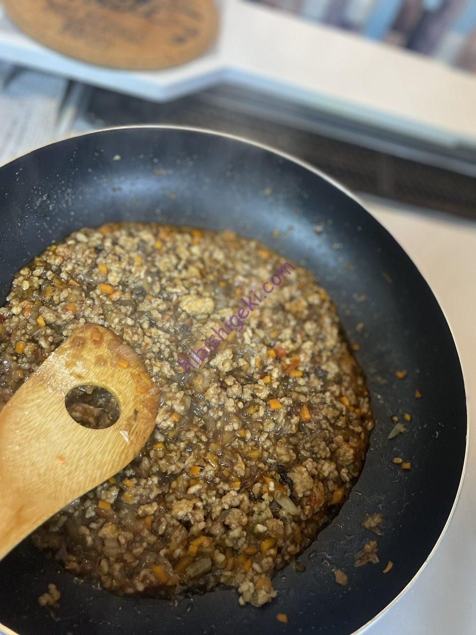 途中味をみたら、本格的にスパイスがきいててめっちゃ辛い💦