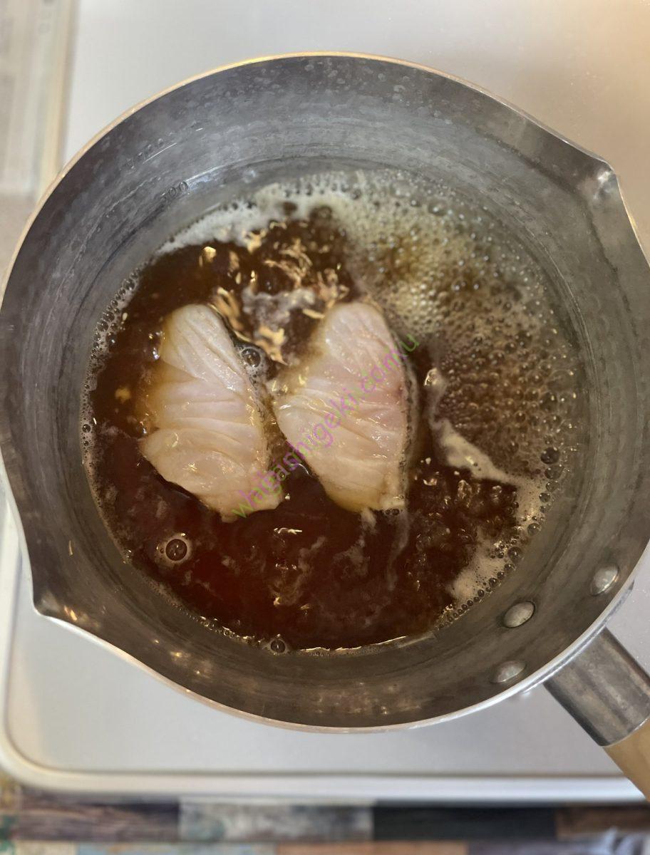 タラは、、酒で生臭さをとり
