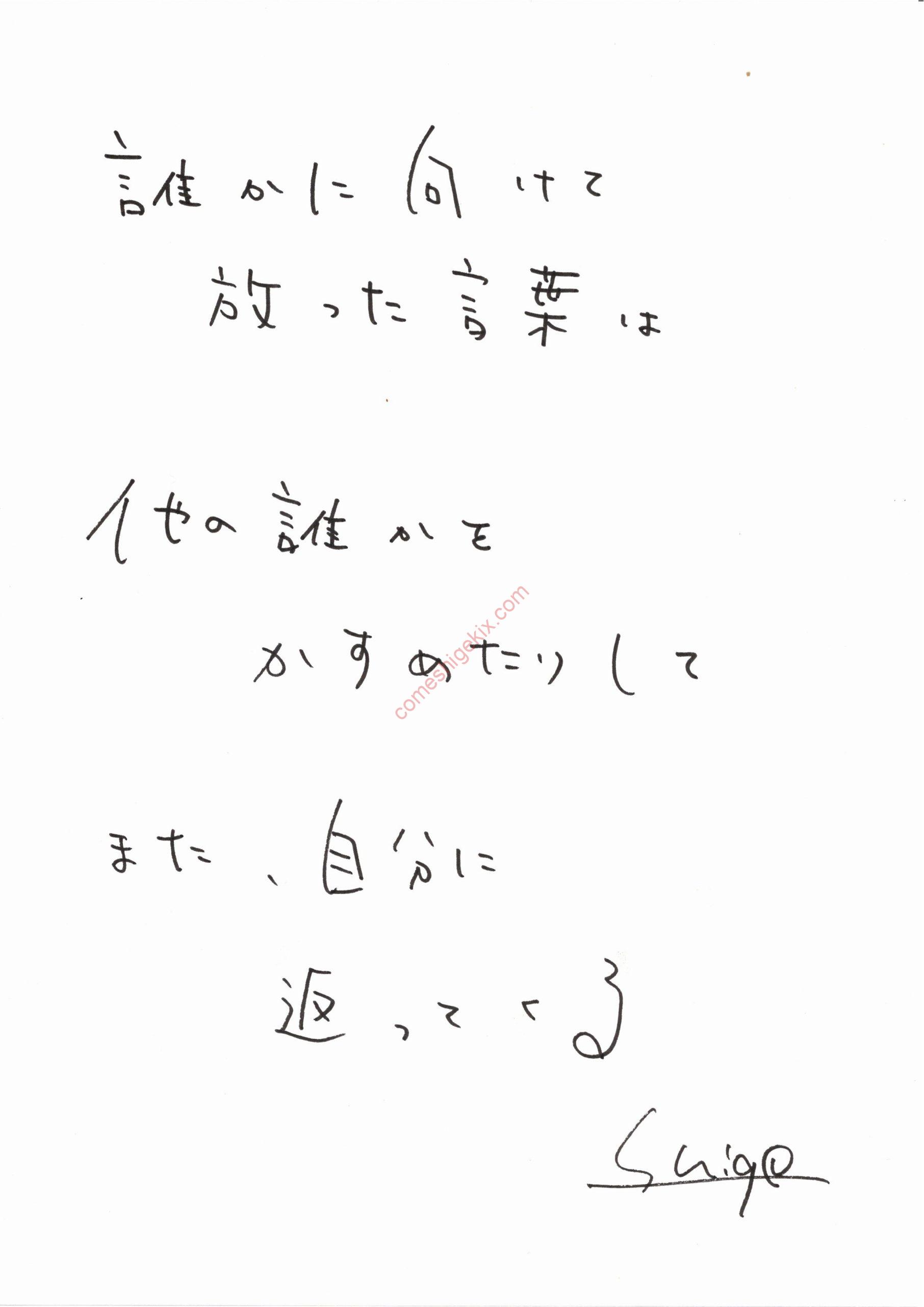 スポンサーリンク 言葉はブーメランかもね 手描き X Facebook はてブ LINE Pinterest コピー 2025.11.202026.04.05 記事内に広告が含まれています。 誰かに向けて放った言葉は他の誰かをかすめたりしてまた、自分に 返ってくる 優しい言葉は優しさを生んで傷つく言葉は傷を生んでそしていつか、自分に返ってくる できるだけ、できるだけやさしくてあたたかい言葉をかけたい