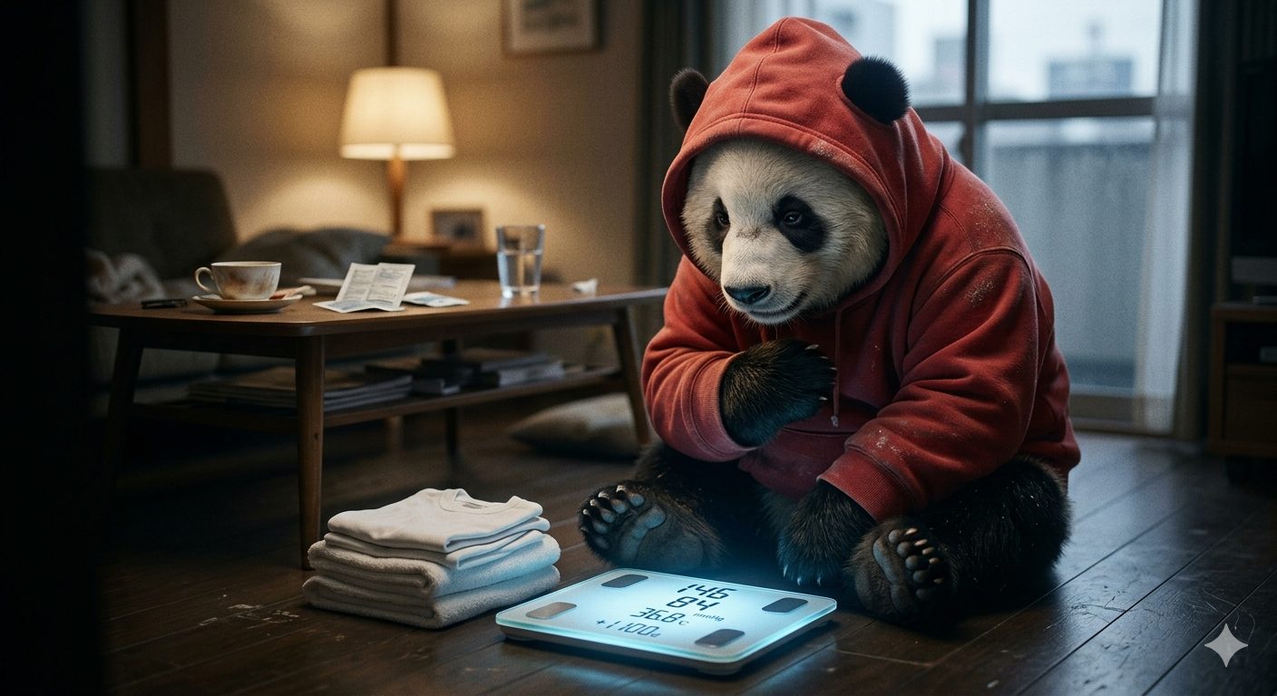 しかしデジタル体重計の液晶に浮かぶ「1,100」という無機質な数字が、その期待を無慈悲に粉砕します。