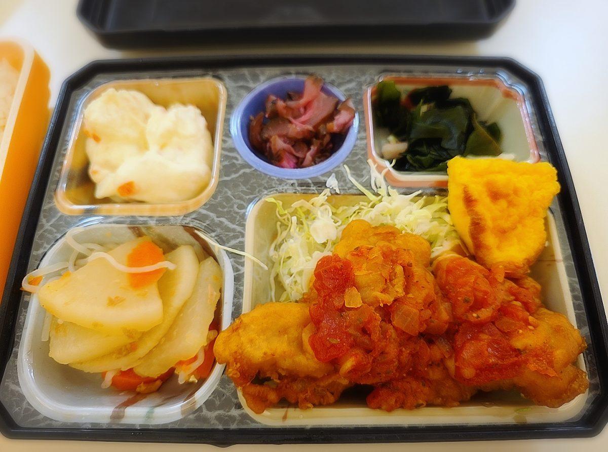 お弁当はサルサチキン。